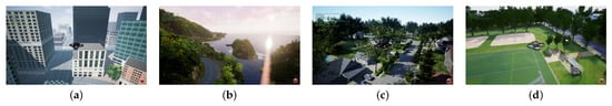 We use Intel Core i7-9700K (32 GB of main memory) and NVIDIA GeForce RTX 2070 SUPER, which is represented in Table 1. Dataset, which are used for training, validation, and testing, have been collected from four maps provided in the AirSim environment; Blocks, City, Coastline, and Neighborhood, where the overviews of the maps are shown in Figure 9.