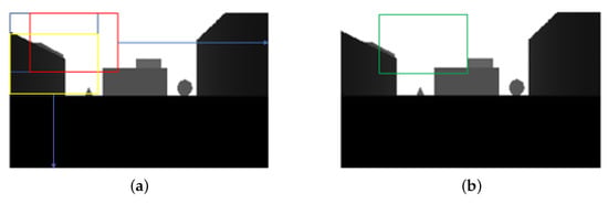 Previously, we have evaluated the accuracy and run time of the proposed method. In this section, we conduct the simulation of a drone flight in AirSim to demonstrate that the proposed method can fly avoiding collision with objects. In order to realize the safe flight of an autonomous drone, it is necessary to plan the path by itself, that is, the drone needs to select the direction so that the drone can avoid colliding with objects. In the experiments, we use a state-of-the-art path planning method for flight control, which is developed in []. The work in [] introduced the method that divides a depth map into multiple sections. The presented method in [] divides a depth image into 289 overlapped sections (17 rows and 17 columns) as shown in Figure 11.