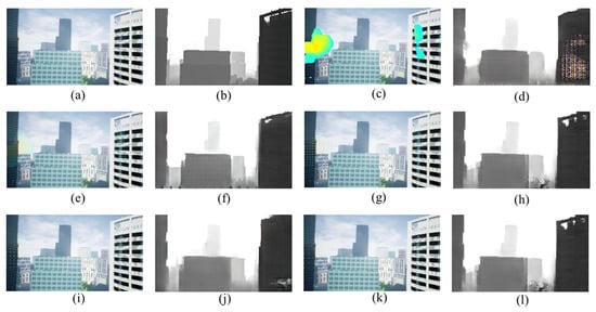 In addition, according to Table 4, although proposed method is higher RMSE than other methods, the proposed method is higher accuracy. The reason for this is that the proposed method embeds optical flow pixels in the monocular image, which increases the outliers in those pixels, but improves the accuracy of the surrounding pixels. Therefore, while RMSE is degraded due to outliers at that one point, the overall accuracy is high and the value of is better than other methods. It can be seen from the Table 6 that the outlier at this single point is not a problem for drone collision avoidance.