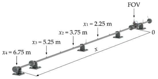 where  is the adiabatic index,  is the shock wave Mach number,  is the speed of sound and R1 is the specific gas constant. The velocity of the shock wave generated in the shock tube attenuates along the driven section due to the thermal-viscous effects [,,,,,]. Therefore, Vwall is usually extrapolated from the velocity distribution along the driven section determined using a time-of-flight (TOF) method. This method determines the shock wave velocity along the driven section using the times of the shock wave passages over the side-wall pressure sensors ti with the centers at locations xi along the driven section [,,,,]. Considering the quadratic model for the variation of the shock wave velocity V(x) = ax2 + bx + c, four side-wall pressure sensors are required to obtain the constants a, b and c by solving the system of three equations []: