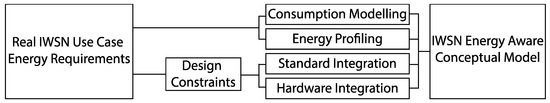 The top-down approach conceptual model of an IWSN energy-aware solution.