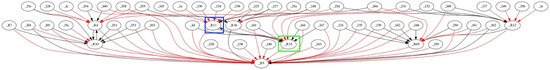 The PEAR impact on network topology evolution: phase 2. The device highlighted with the green square belongs to a low energy profile whereas the device belonging to a high energy profile is highlighted with a blue square.