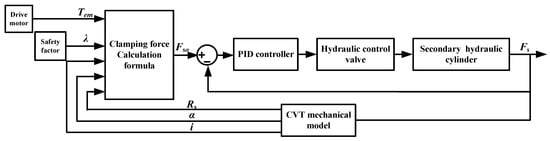 Since this paper focuses on the study of CVT clamping force control, the EOP control strategy is not considered in this article. It is assumed that the transmission control unit (TCU) can automatically adjust the EOP speed according to the system flow demand, realizing the active control of the system flow.