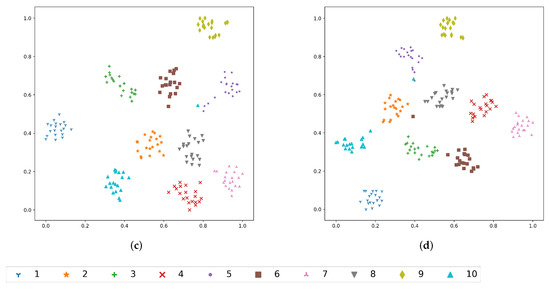 Figure 5c,d indicate the effectiveness of temporal-frequency aggregation methods in capturing speaker-dependent information. The comparison of the two figures with Figure 5a,b leads to the following observations: