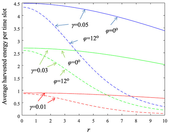 where the equality in the second line of equations is due to the fact that is exponentially distributed. For a given r and the average harvested energy per time slot can be found by