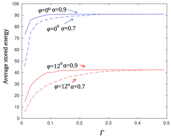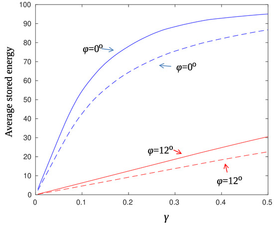 Average stored energy for , , , and m. Solid line: Particle filter method, dashed line: AR filtering.