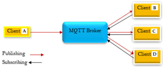 This scenario describes an MQTT broker as a gateway, which can be described as a receiver or a server, that allows clients to submit very brief one-hop messages to the broker and also receive messages if they have subscribed to a certain topic, as described above. Essentially, the MQTT broker is positioned between the clients, which is a fundamentally sound arrangement (A, B, C, and D in Figure 1). The clients should be subscribing to the same events, and the MQTT broker should be assisting in the transmission of the tasks connected with the events through the use of the MQTT broker. What really happens is that these specific clients B, C, and D subscribe to the tasks that client A has already published to the broker, and in this instance, the transmission is done via TCP/IP, so all four clients will open a TCP connection to the MQTT broker to which they have subscribed to the task, and they will then receive updates about the topic that has been published. This is often done in the same way that the post office model is done. To put it another way, in this scenario, the broker acts as a sort of post office, with clients who can either send or receive letters and messages with the addresses to which the communications are to be sent. If a client sends a message, any one of the other clients may be able to receive the message depending on the tasks that are associated with the message.