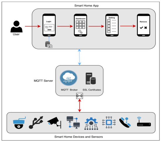 - Gupta, V.; Khera, S.; Turk, N. MQTT protocol employing IOT based home safety system with ABE encryption. Multimedia Tools Appl. 2021, 80, 2931–2949. [Google Scholar] [CrossRef]