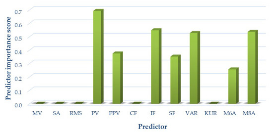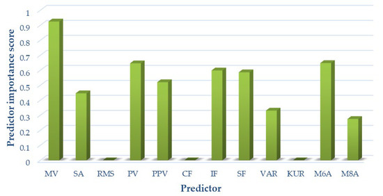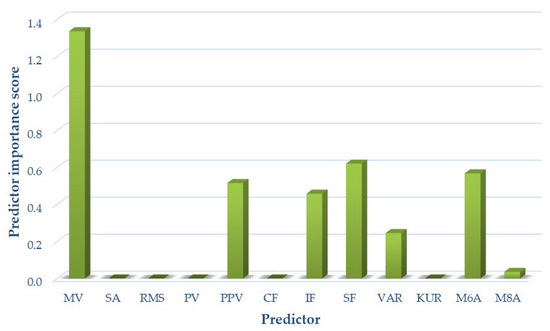 Due to the complex mechanics of the knee joint and significant differences occurring in articular cartilage loads, as well as the different friction and lubrication parameters in both kinetic chains, optimal signal measures were selected separately for each of the analyzed variants. The results of the analyses are shown in Figure 8 for variant I, Figure 9 for variant II, and Figure 10 for variant III, respectively.
