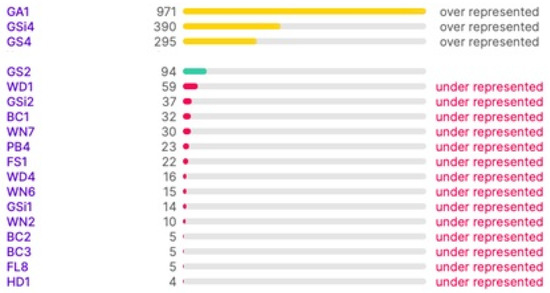 The samples were labelled by JAF and PM [52]. The master information sources that have been referenced for labelling the images are the guides published by the Irish Heritage Council [52,54]. The manuals provide a standard scheme and protocol for identifying, describing, and classifying wildlife habitats in Ireland. Figure 3 illustrates the range of class types and the number of images in each type in the dataset after labelling. It is noted that the distribution of the images to class types is not ideal for training; however, this can be improved upon in the future by collecting more images. In this work, this is dealt with the task by boosting the data in the under-represented classes.