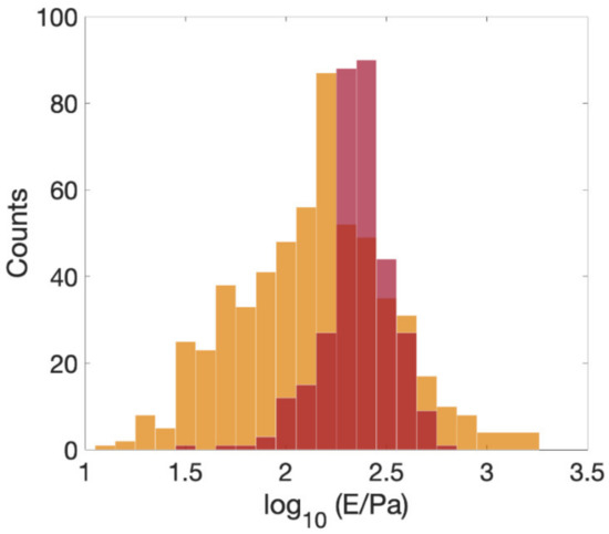 - Dimitriadis, E.K.; Horkay, F.; Maresca, J.; Kachar, B.; Chadwick, R.S. Determination of Elastic Moduli of Thin Layers of Soft Material Using the Atomic Force Microscope. Biophys. J. 2002, 82, 2798–2810. [Google Scholar] [CrossRef]