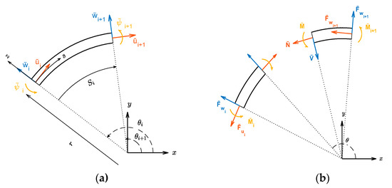 2.2. Dynamic Stiffness Matrix of Curved Beam