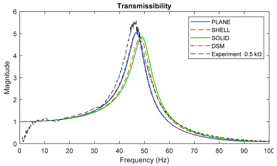 - Transmissibility resonance peak frequency—frequency at which transmissibility FRF magnitude is maximum;