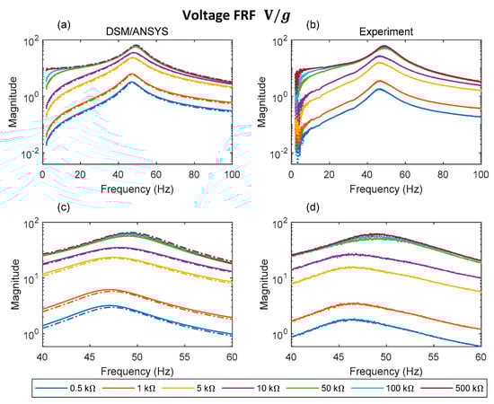 - Voltage FRF resonance peak frequency—frequency at which the voltage FRF magnitude is maximum.