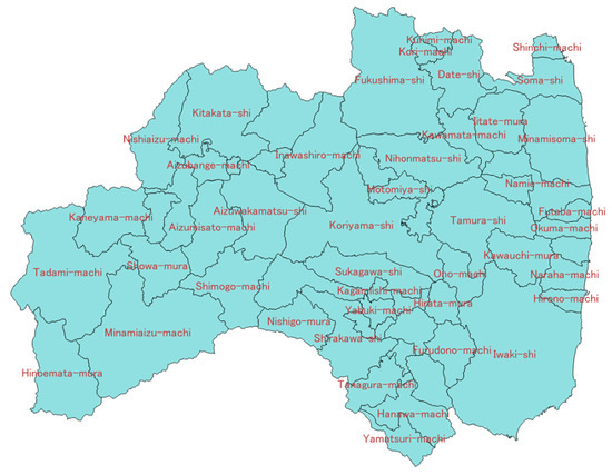 - Information on 59 Municipalities in Fukushima Prefecture. Available online: https://www.pref.fukushima.lg.jp/site/iju-tokyo/city-town-vill.html (accessed on 12 April 2018).