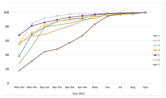- Next, we calculated the proportion of the cumulative distance up to the specified date and considered the cumulative distance up to 30 September 2011, to be 100%.