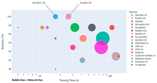As a classifier for the model, we chose a simple state-of-the-art classifier for spatial feature extraction, MobileNet V2. As can be seen in Figure 3, MobileNet V2 achieves high accuracy with a significantly smaller network size.