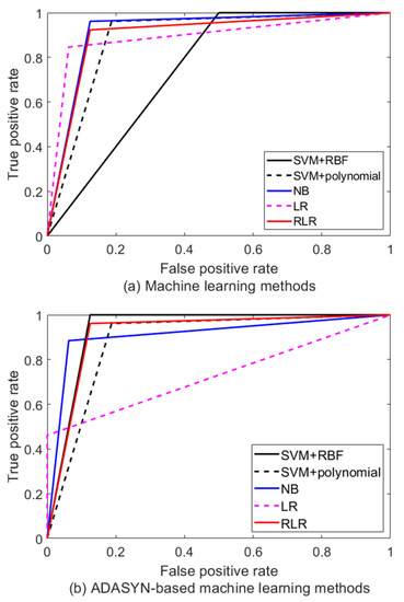 ROC curve of machine-learning methods and ADASYN-based machine-learning methods.