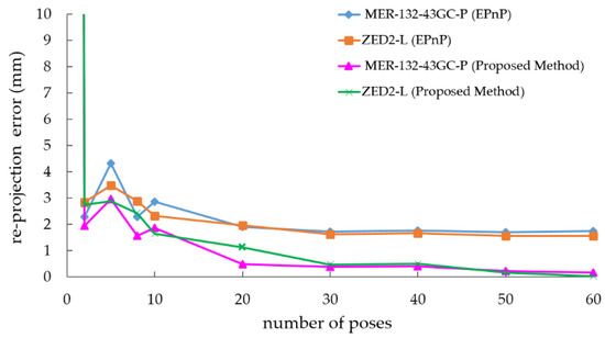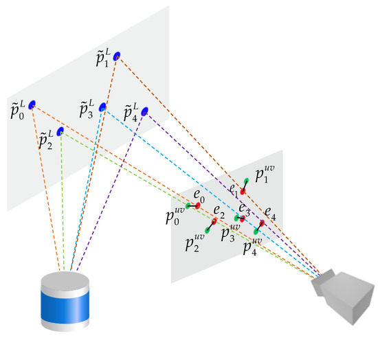 - All feature points of this method are involved in the optimization calculation, so the accuracy requirements for the initial measured values of the feature points and the initial values of external parameters are relatively low. Through quantitative analysis of different calibration methods, it was found that since the original point cloud is also optimized, the average re-projection error of our calibration result on the normalized plane was 0.161 mm, which is better than the unoptimized calibration method.