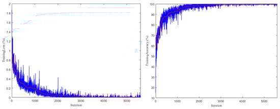 The training process of a deep convolutional neural network for target image identification and classification is a supervised neural-network training method. The input of the CNN is MFL images, and the feature types of the MFL images must be defined manually. Therefore, it is necessary to create experimental datasets and label files for various feature types. The datasets contain features images of various pipelines as far as possible. In the method, a database of MFL pseudo-color images was established, including six categories (GW, SW, Tee, COR, IHT, and FL). The dataset contains a total of 9000 pipeline MFL pseudo-color images, in which 6000 images were randomly selected as the training set, with 1000 images for each of the six categories features and defects, and the remaining 3000 images as the testing set, with 500 images for each of the six categories features and defects. The image size was set as 112 × 112 × 3.