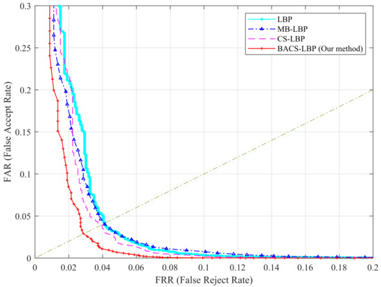 In this section, to verify the performance of the proposed scheme, we test LBP, MB-LBP, CS-LBP, and BA-CSLBP operator on the HKPU database with the same parameters. The results are shown in Figure 6, and it can be seen that our operator exhibits better performance. This is because our operator takes into account both macroscopic and microscopic local information and has a better representation of the image.