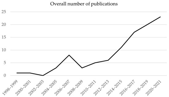 Most studies were performed in the US (n = 65), followed by United Kingdom (n = 7), The Netherlands (n = 6), Australia (n = 6), Canada (n = 4), Germany (n = 3), Norway (n = 2), Thailand (n = 2), Hong Kong (n = 1), Chile (n = 1), and Taiwan (n = 1). Almost half of the studies were published in the past four years (see Figure 2).