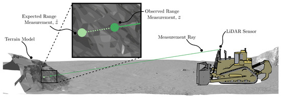 As the terrain model is now part of the state vector, the LiDAR observation function is of the form