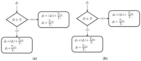 Flowchart diagram for the duty cycle decision when SVM is used for low modulation index operation: (a) for ; (b) for .