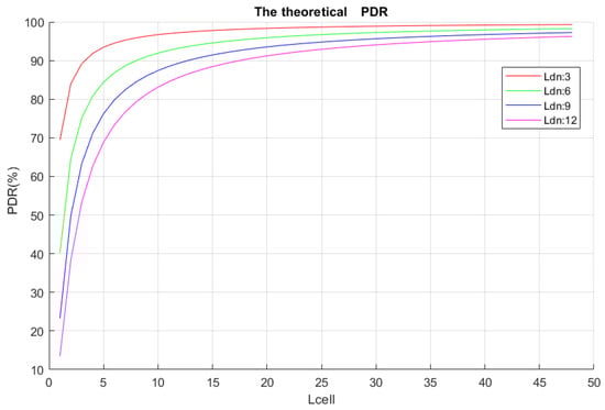 Lcell. Just as expected, the PDR increased with the number of available cells and decreased with the increment of the transmitters (DNs).