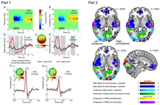 - Laufs, H.; Holt, J.L.; Elfont, R.; Krams, M.; Paul, J.S.; Krakow, K.; Kleinschmidt, A. Where the BOLD signal goes when alpha EEG leaves. Neuroimage 2006, 31, 1408–1418. [Google Scholar] [CrossRef]