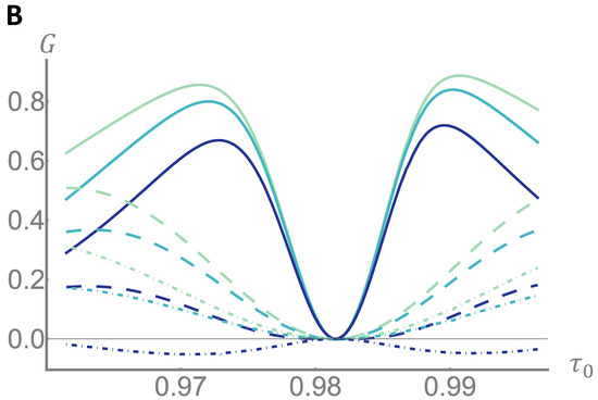 The computation of the entropy is complicated by the fact that the distribution are in general continuous ones. To overcome this problem, we performed a uniform discretization of the distribution to some appropriate dimension K, so that the integrals over in Equation (A4) are substituted by finite sums, . Under this approximation is easy to see how each entropy term in Equation (A5) can be rewritten as some convex combination of a finite subset of maximum dimension of coherent states. The calculation of than can be reduced to the calculations of terms in the form: