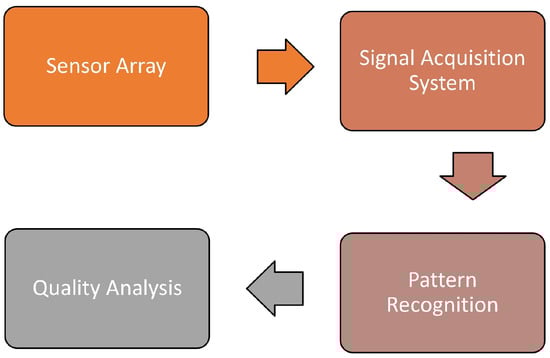 One of the conventional methods for quality measurement of fruit, vegetables, different types of juices, and wines is the use of a sensory panel []. In this method, a qualified group of panelists evaluates the product’s taste based on different qualities such as sweetness, sourness, bitterness, and aroma. The study is always influenced by subjective readings, the lack of standard methods to rank the product, problems of stability, and reproducibility. It is a time-consuming method and also involves a high cost [,,]. Nevertheless, this has inspired many researchers to develop an electronic device (commonly known as an electronic tongue) that can be utilized as artificial human taste buds.