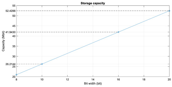 The relationship between the storage capacity and bit width calculated based on the optimised processing flow is as shown in the following Figure 8.