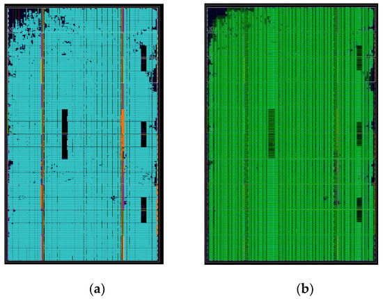 It can be observed from Figure 15 that when the BP algorithm is implemented with the architecture of this study, the storage resources occupy more than 80%, the logic resources occupy nearly 60%, and the layout and routing results of each part are obtained after comprehensive compilation as Figure 16.