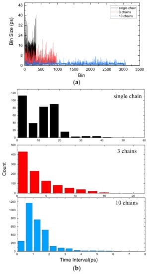 (a) Bin size with different chain numbers. (b) Histogram of bin size.