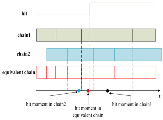 Point to the hit moment on time axis of different chain.