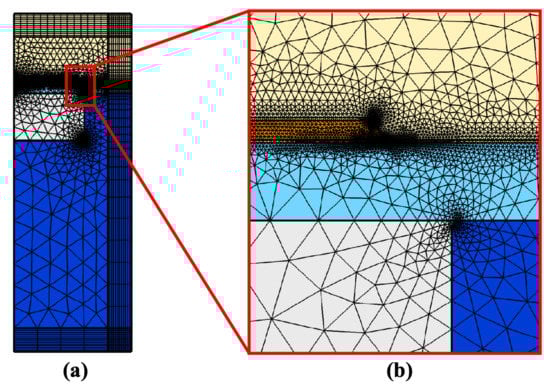 Figure 4 shows the general scheme of the meshing for the two FEM models. Firstly, all domains (not including PMLs) are meshed using the “Free Triangular” feature, constrained by maximum element size for each field: , in other words, , where is the pressure-wave speed, and is the corresponding wavelength. The remaining domains, i.e., PML regions, are meshed using the “Mapping” feature that stretches the inner boundary mesh to the outer side of 30 elements in distribution.