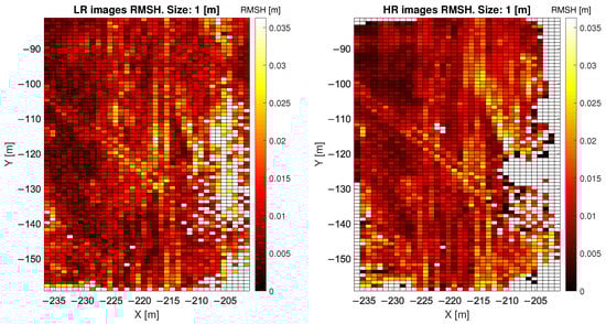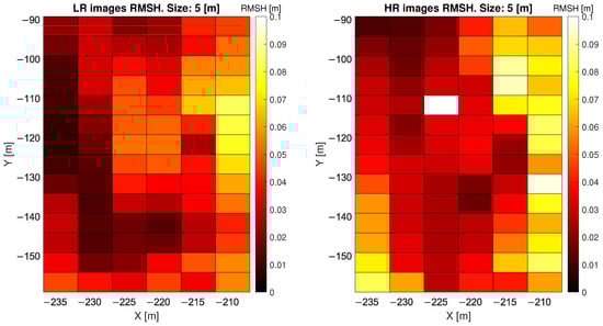 RMSH values evaluated for each pixel with 5 m window size; comparison between HR and LR.