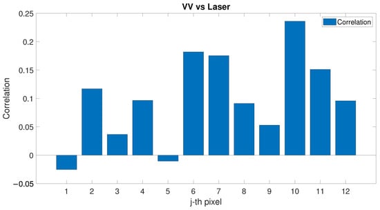 A correlation factor—in the sense of Pearson’s linear correlation coefficient—has been evaluated for each pixel of the study area between SAR backscatter and PLS intensity, averaged over time. Pearson correlation coefficient is a measure of linear correlation between two sets of data (SAR backscatter and PLS intensity in our case) and is the ratio between the covariance of the two variables and the product of their standard deviations.