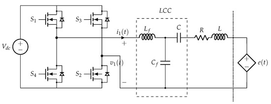 In particular, each transmitting coil is fed by an H-bridge inverter trough an LCC compensation network, as illustrated in Figure 2. The LCC network has been chosen since, in the case of double sided compensation, it guarantees that the resonant frequency is independent on the coupling coefficient, which strongly varies in dynamic WPT systems, and also independent on the load condition. These peculiarities allow the system to operate at a constant switching frequency [25]. The tuning of the primary compensation network is realized such that: