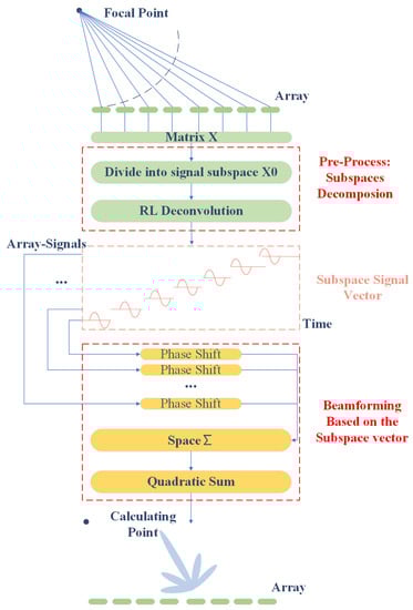 Subspace deconvolution is applied to filter most original data from the background as it is similar to a process to acquire a clear image from a blurred one. After we acquire a more accurate subspace vector, beamforming can be performed based on phase shift, which is classical in CBF in Equation (2).