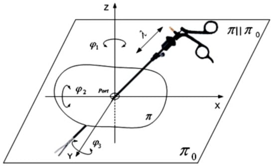 The movement of the tool after passing through the access port can be described as spherical, which should be superposed with the translational movement reaching any point in the working space shown in Figure 10.