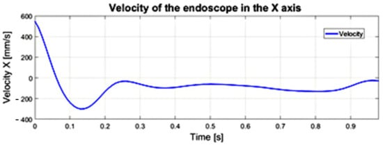 Velocity course of the endoscopic tool along the X−axes obtained on the basis of the trajectory.