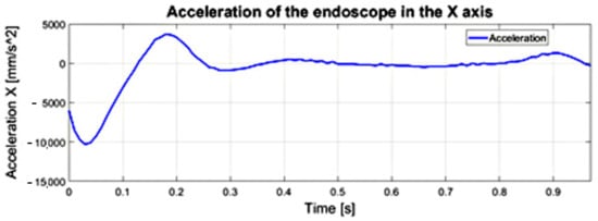 The acceleration course of the endoscopic tool along the X−axis. The figure illustrates the acceleration fluctuations.