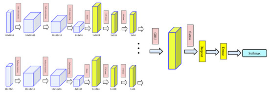 The clients use different local datasets to train a model with the same structure, and the cloud collects local model parameters for parameter fusion. Each BVP series data can be regarded as a picture sequence, which consists of pictures depicting the distribution of velocity components. Each BVP profile describes the energy distribution of the user performing a certain gesture. We use a convolutional neural network (CNN) as a spatial feature extractor, which can automatically learn parameters and features for complex image problems.