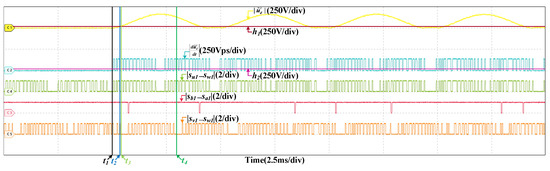 There is one point worth discussing. In the fault diagnosis process of current sensors, the command signals are important variables. , , and are indispensable. The fault location and type identification are realized based on the differences between them. They are PWM (pulse width modulation) signals. If all of them have a high duty cycle or low duty cycle, there will be only a few instants when they are different. For the offset fault, since the differential of residual does not change periodically, once the difference appears, the fault can be located. For the scaling fault, two conditions need to be met, the difference appears and the differential of residual is larger than the threshold. If the differential of residual is less than the threshold when the difference appears, the fault can not be located. However, in most applications, this situation does not happen all the time. The fault can be diagnosed, but the fault diagnosis may cost more time. Moreover, the operating principles of the rectifier and inverter are different, the phases of three phase stator currents are different either. , , and will not always be the same, which has been proven by the HIL tests. So the proposed fault diagnosis method is suitable for traction converters.