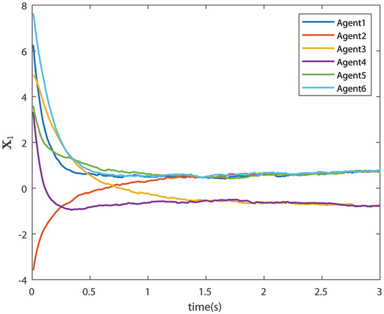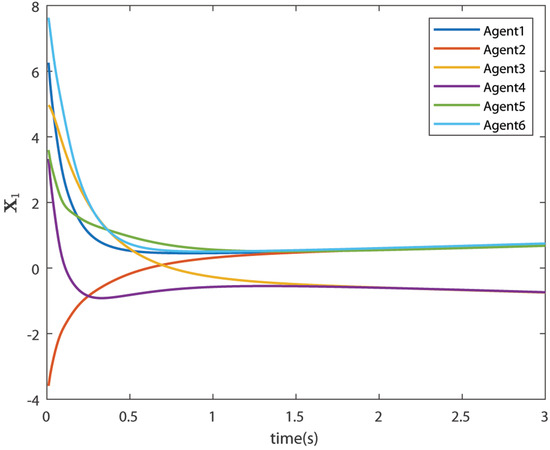 We considered six agents in this syudy. The agents are having highly nonlinear terms in their dynamics. The dynamics for ith agent [21] is given in Equations (36) and (37).