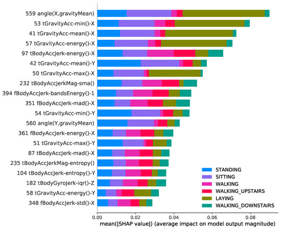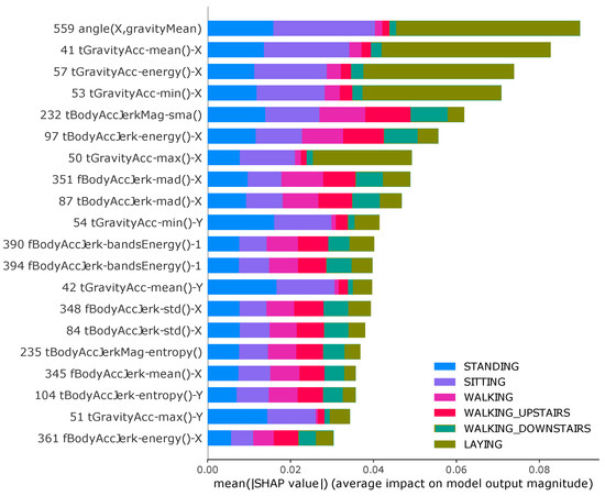 More recently, XAI methods have been proposed to help interpret the predictions of machine learning models, as example, LIME [57], Deep Lift [58] and SHAP [59]. XAI methods have been used in HAR context to understand the rationale behind the predictions of the classifier [9,33,46,47]. In this work, we choose a unified framework for interpreting model predictions, called SHAP (Shapley additive explanations), to explain graphically and intuitively the results of different validation methodologies used in HAR systems.