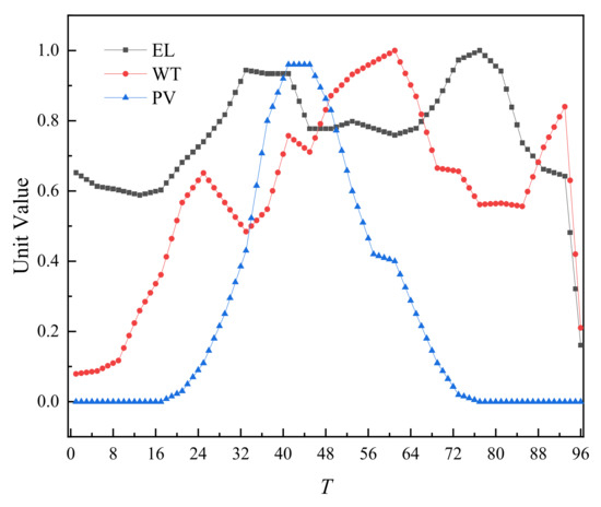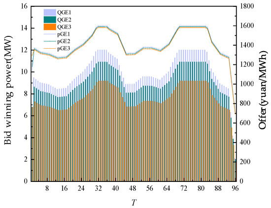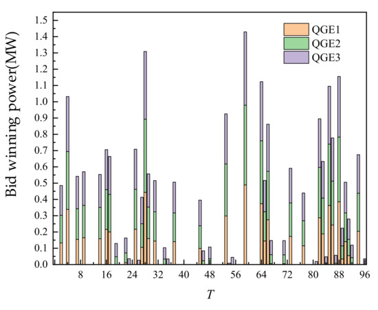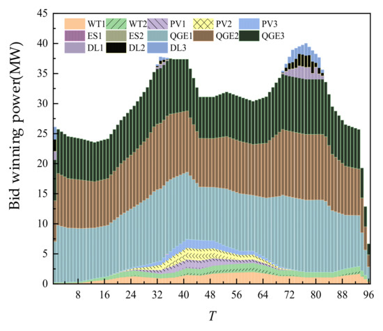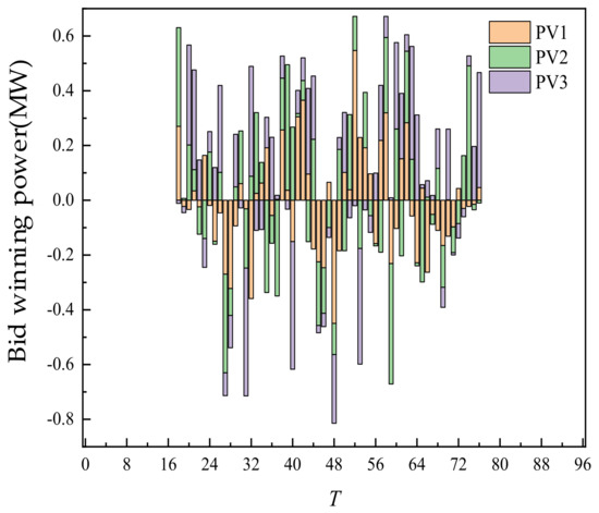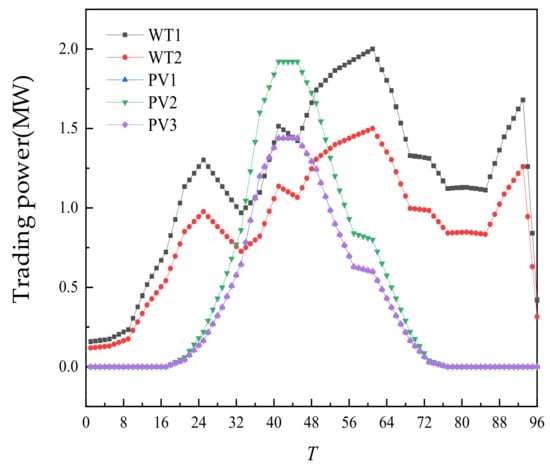The day-ahead trading of WT and PV is shown in Figure 6. On the recent time scale, WT and PV are all traded, mainly because of their price advantages.