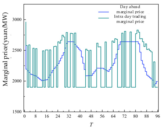 The sensitivity at different trading times is analyzed by the marginal price of the day-ahead and intra-day trading in SGLS, as shown in Figure 17 below.
